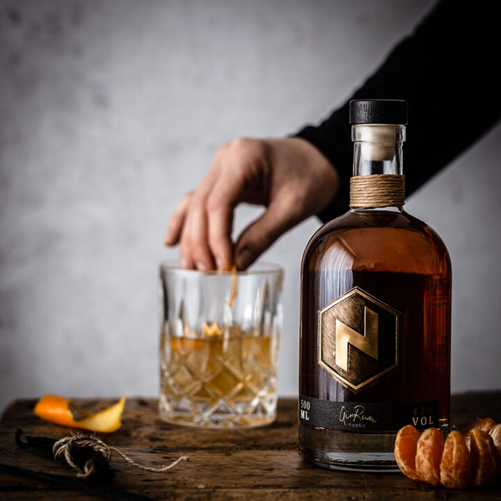 Amerikanische Weißeichefässer schenken ihm samtige Vanille- und weiche Karamellnoten, die sich harmonisch mit neekas ikonischer Kopfnote – der Mandarine – verbinden. Um diese fruchtige Signatur noch weiter zu intensivieren, reift der neeka GINRUM GOLD abschließend in seltenen Orangenweinfässern. Sie verleihen ihm eine frische, zitrusbetonte Brillanz, die im Zusammenspiel ein völlig neuartiges Geschmackserlebnis erschafft.